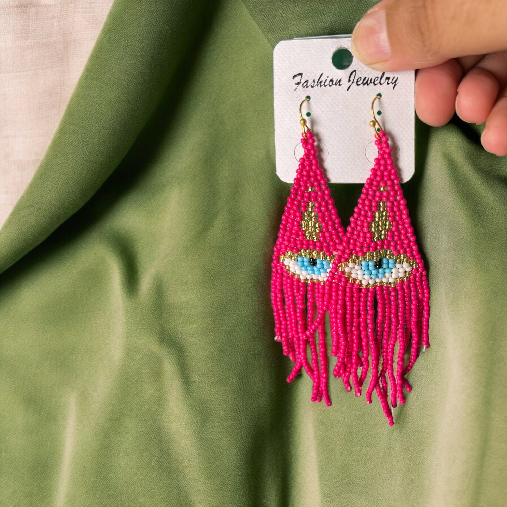 Gorgeous evil eye earrings handcrafted with beads, a unique blend of bright colour and evergreen design