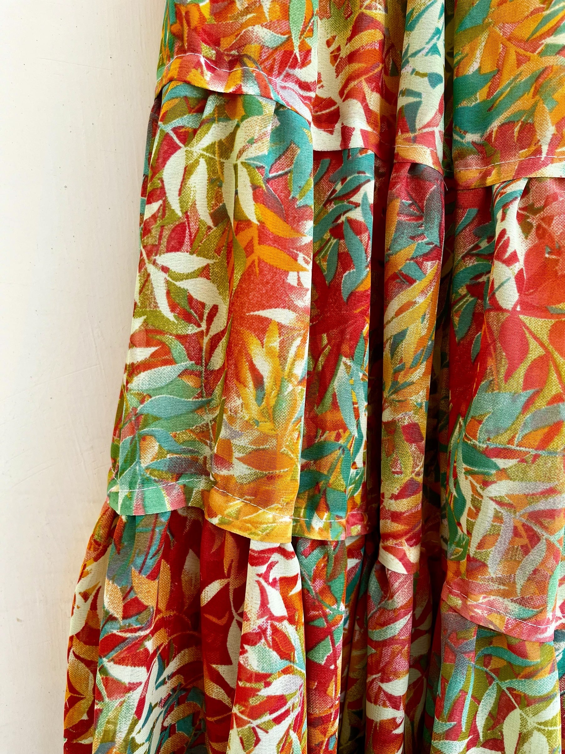 A beautiful multicolor tropical print skirt, which is perfect for a summer day out when paired with a solid top